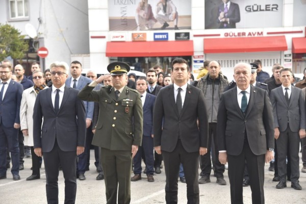 Cumhuriyetimizin Kurucusu Ulu Önder Mustafa Kemal Atatürk'ün ebediyete irtihalinin 85.yıl dönümü nedeniyle İlçemiz Cumhuriyet Meydanı'nda düzenlenen anma programına Kaymakamımız Sayın Muttalip Çetin, Belediye Başkanımız Ramazan Bahçavan, kurum amirleri, idareciler, öğretmen ve öğrenciler katılım sağladı. Atatürk büstüne çelenklerin konulmasından sonra 09:05'de başlayan siren sesleri ile 2 dakikalık saygı duruşunda bulunuldu ve ardından İstiklal Marşı okundu.