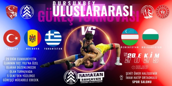 Dursunbey'de Uluslararası Güreş Turnuvası29 Ekim Cumhuriyet Bayramı etkinlikleri kapsamında gerçekleştirilecek olan 'Dursunbey Uluslararası Güreş Turnuvası' 5 ülkeden yüzerce sporcunun katılımı ile gerçekleştirilecek. Tüm hemşehrilerimizi bekliyoruz. Tarih: 28 Ekim 2025 Salı Saat: 10.00 Yer: Şehit Ömer Halisdemir İmam Hatip Ortaokulu Spor Salonu