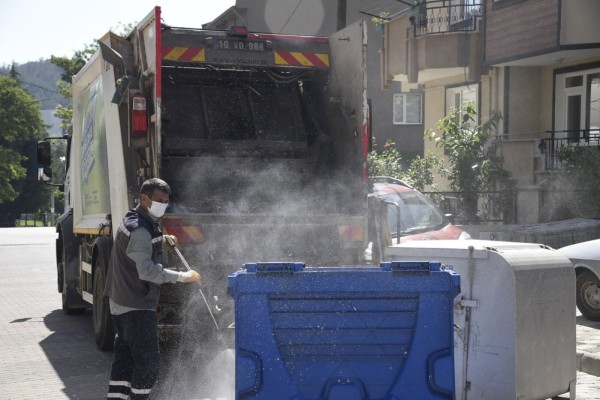 Kurban Bayramı sonrası çöp konteynerleri sterilize ediliyor. 🗑️