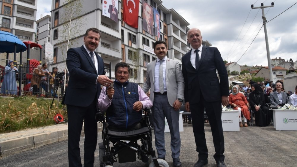 Dursunbey’de yapımına 2020 yılında başlayan 3. Etap TOKİ konutlarının anahtar teslim töreni gerçekleşti. 160 konut yapılan tören sonrası hak sahiplerine teslim edildi.
