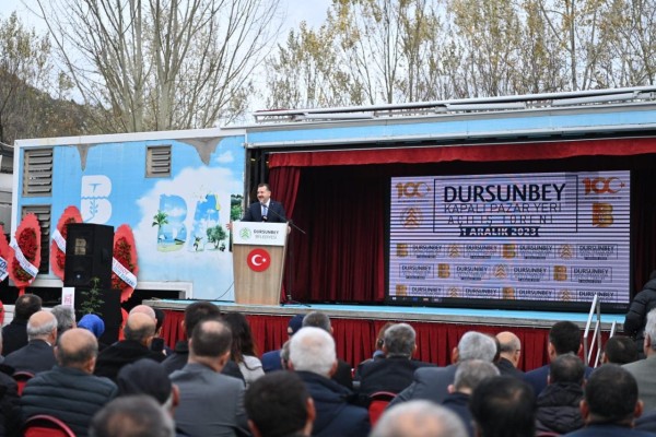 Dursunbey Belediyesi tarafından inşası tamamlanan 7 bin metrekarelik kapalı pazar yeri, törenle hizmete açıldı. Dursunbey Belediye Başkanı Ramazan Bahçavan’ın önem verdiği projeler arasında yer alan Kapalı Pazar yeri Dursunbey Saz bölgesinde hizmete açıldı. Toplam 9 bin metrekarelik alana yapılan pazarın kapalı alanı 7 bin 35 metrekareden oluşuyor. İçerisinde 2 bin 75 metrekarelik otopark, 253 satış yeri, 8 balıkçı, 1 balık pişirme, 4 peynir dükkanı, 1 adet çay ocağı, gezinti ve dinlenme alanlarına sahip bu muhteşem tesis, olası felaketlere karşı da toplanma alanı olarak tasarlandı. Afet durumlarında mutfak, banyolar ve tuvaletler bulunan pazarda, bebek bakım odası da bulunuyor. Yaklaşık 40 Milyon Türk Lirasına mal olan pazarın resmi açılış törenine AK Parti Genel Başkan Yardımcısı Belgin Uygur, Balıkesir Milletvekilleri Mustafa Canbey, İsmail Ok, Balıkesir Büyükşehir Belediye Başkanı Yücel Yılmaz, AK Parti İl Başkanı Mehmet Aydemir, Dursunbey Kaymakamı Muttalip Çetin, Dursunbey Belediye Başkanı Ramazan Bahçavan katıldı. Saygı duruşu ve İstiklal marşının okunması ile başlayan törende konuşan Dursunbey Belediye Başkanı Ramazan Bahçavan; “Uzun zamandır hayalini kurduğumuz Kapalı Pazar yerimizi hemşehrilerimizin hizmetine sunmanın mutluluğu içerisindeyiz. Bu güzel mekan sayesinde pazarcı esnaflarımız ve vatandaşlarımız yağmurdan, çamurdan kurtularak daha nezih bir ortamda alışveriş yapma fırsatı bulacak. Bizlere her daim destek olan Balıkesir Büyükşehir Belediye Başkanımız Yücel Yılmaz’a pazarımızın yapımında bizlere vermiş olduğu destekler için teşekkür ediyorum” dedi. Kapalı Pazar yerinin doğal afetlerde kullanılacak şekilde dizayn edildiğini ifade eden Başkan Bahçavan; “Tonoz sistem ile inşa edilen pazarımız, olası yüksek şiddetteki depremlere karşı dayanıklı bir şekilde yapıldı. Pazarımızın içerisi olası felaketler sonrası toplanma ve barınma alanı olarak kullanılacak. Bu sebeple mutfak, duşlar, tuvaletler, bebek bakım odaları ve afet anında ihtiyacı duyulacak malzemeler burada yer alacak. Başlangıcından bitimine kadar emeği geçen tüm çalışma arkadaşlarıma ve yüklenici firmaya teşekkür ediyorum. İlçemize hayırlı olsun” dedi. Kapalı Pazar’ın Dursunbey’e çok yakıştığını ifade eden Balıkesir Büyükşehir Belediye Başkanı Yücel Yılmaz ise; “Dursunbey’de yaptığı projeler ile ilçenin adeta kaderini değiştiren bir Belediye Başkanı var. Biz 2014 yılında göreve geldiğimizde onun tecrübelerinden faydalandık. Dursunbey 2014 yılından bugüne çok değişti. Dursunbey güzel hizmetler aldı. Şimdide Dursunbey’in en önemli ihtiyaçlarından birisi olan Kapalı Pazar yerinin açılışını gerçekleştiriyoruz. İlçemize hayırlı olsun” dedi. Konuşmaların ardından protokol tarafından açılış kurdelesi kesilirken, katılımcılar sonrasında Pazar yerini ziyaret ettiler.