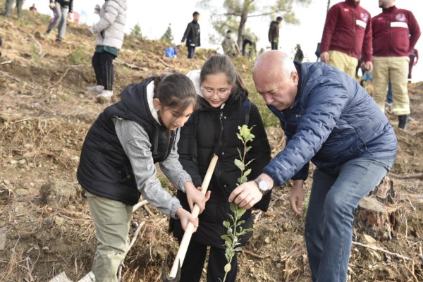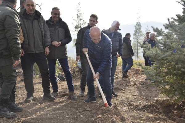 İnsanlık İçin Fidanlar Toprakla Buluştu Türkiye’nin dört bir yanında bugün kutlanan Ağaç Bayramı etkinlikleri çerçevesinde Dursunbey Tekedere bölgesinde oluşturulan ağaçlandırma sahasında yüzlerce fidan ile toprakla buluştu. Cumhurbaşkanlığı himayelerinde Tarım ve Orman Bakanlığı koordinasyonunda gerçekleşen "Geleceğe Nefes, İndanlığa Nefes" teması ile 11 Kasım saat 11.11'de milyonlarca fidan, Türkiye'niin bir çok bölgesinde toprakla buluştu. Ülke genelinde olduğu gibi Dursunbey'de de bir tören düzenlendi. Tekedere bölgesinde gerçekleştirilen törene Dursunbey Kaymakamı Muttalip Çetin, Belediye Başkanı Ramazan Bahçavan, Dursınbey ve Alaçam Orman Müdürlüğü yetlilileri, Öğrenciler, çeşitli kurum ve kuruluşlardan yetkiler ile vatandaşlar katıldı. #GeleceğeNefes #İnsanlığaNefes