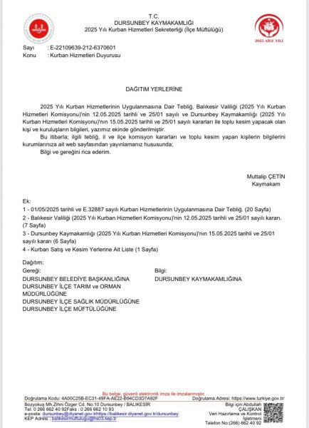 2025 Yılı Kurban Hizmetlerinin Uygulanmasına Dair Tebliği.