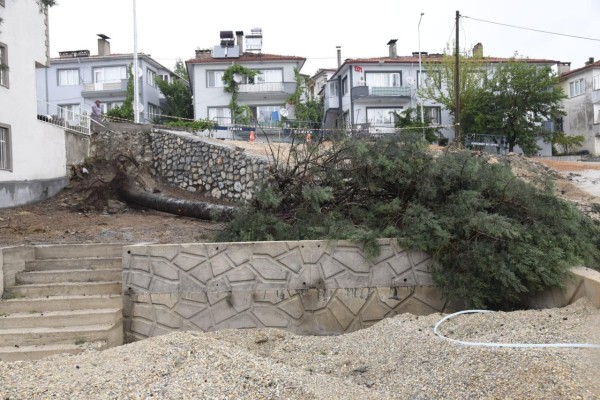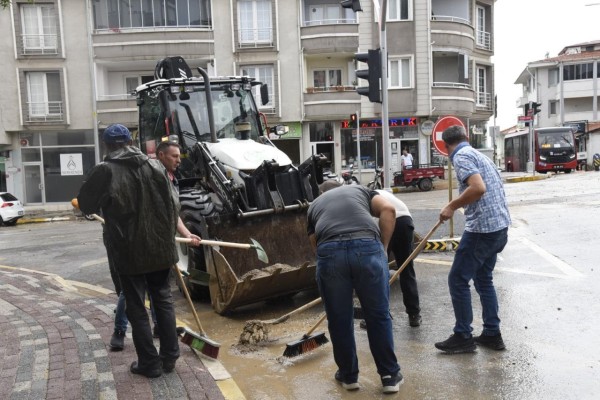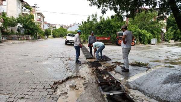 İlçemizde öğle saatlerinde etkili olan sağanak yağışın ardından meydana gelen olumsuzluklara, birimlerimizin özverili çalışmaları ile müdahale edilmektedir.