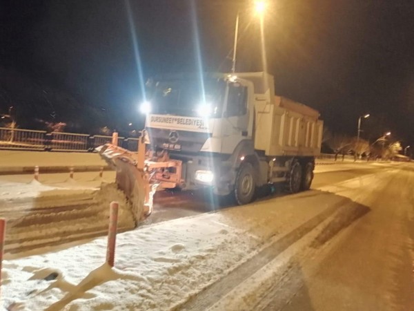 Akşam ve gece saatlerinde etkili olan Kar yağışı sonrası Fen İşleri ekiplerimiz ana arterler ve sık kullanılan yollarda karla mücadele çalışmalarına başladı.
