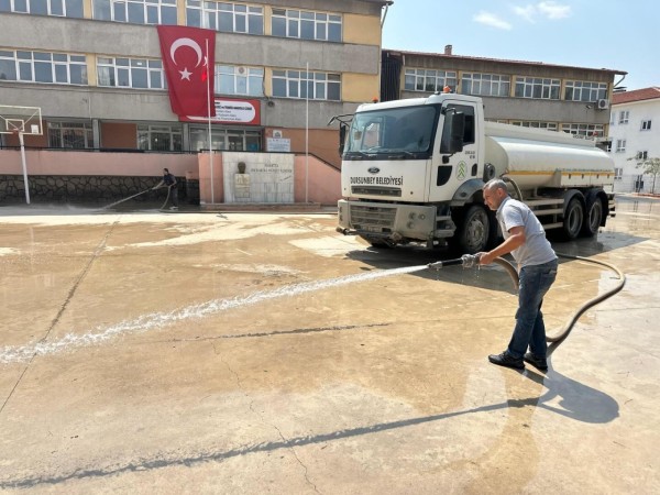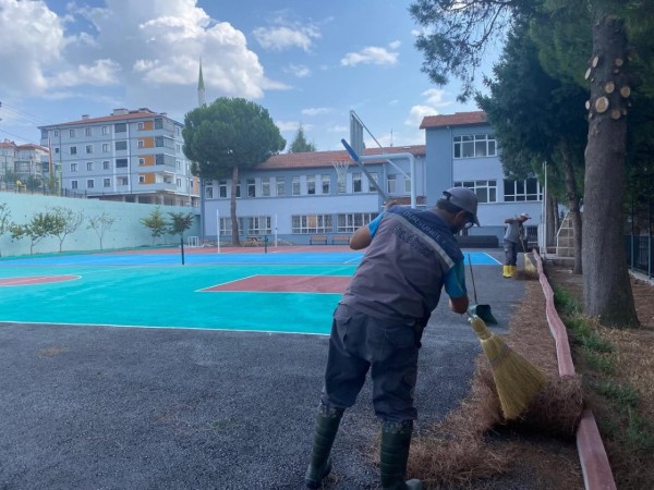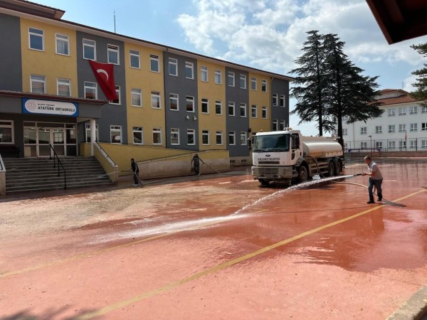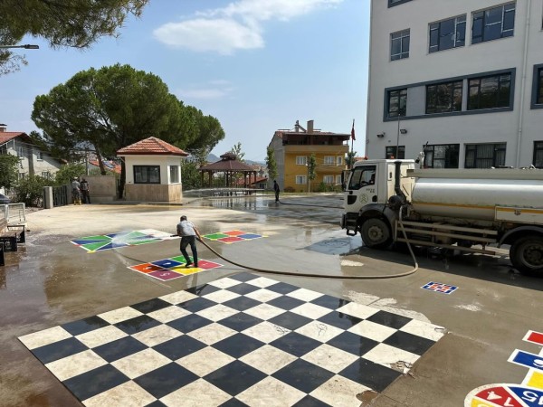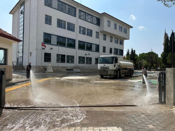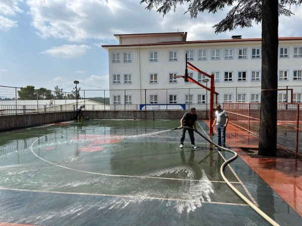 Yeni Eğitim-Öğretim yılı öncesi Okullar pırıl pırıl… İklim Değişikliği ve Sıfır Atık Müdürlüğü tarafından yapılan çalışmalar kapsamında Okul bahçeleri yıkanarak temizleniyor, dezenfektan edilerek çocuklarımıza hazır hale getiriliyor.
