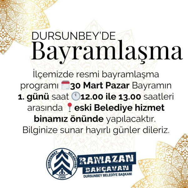 30 Mart 2025 Pazar Bayramın 1. Günü saat 12:00 ile 13:00 saatleri arasında eski Belediye hizmet binamız önünde yapılacaktır.